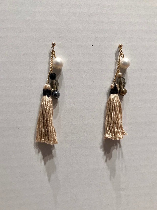 ◉ゴールドのタッセルをメインのモチーフにした華やかなピアスです。 三連パールの色が左右で異なるアシンメトリーデザインで、ちょっとしたひねりを加えています。 耳元にゴールドをあしらえば、着慣れた装いにも、プチゴージャス感を簡単にプラス。 ◎サイズ 長さ 縦7cm 横1cm ◎重さ(片耳) 約2g ◎素材 レース糸・樹脂パール・ビーズ・その他金属 ○1点1点手作りしております。多少歪み、欠けがある場合がございますのでご了承いただいた上でのご購入をお願いいたします。 ○また表示されている写真は、撮影環境や撮影時の天候など、お客様の端末環境により色合いが実際と異なる場合がございますが、ご了承ください。 ○商品に欠陥がある場合を除き、基本的には返品には応じかねます。 ○大変恐れ入りますが、輸送時の破損などのおそれもございますので、着荷後すぐに破損などがないかご確認をお願いします。
