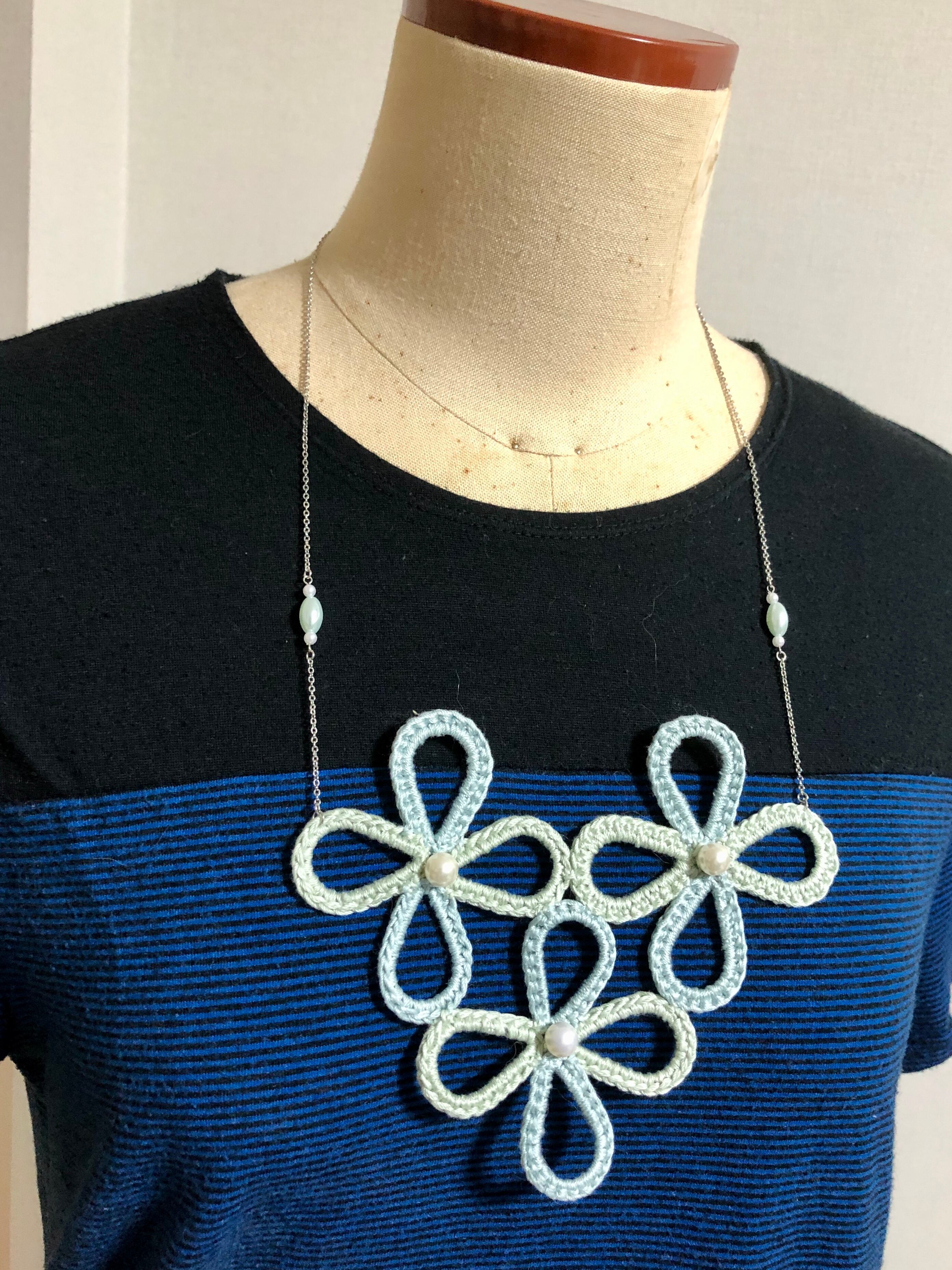 ◉夏の花に見立てた、3つの花が可愛く並んだネックレス。