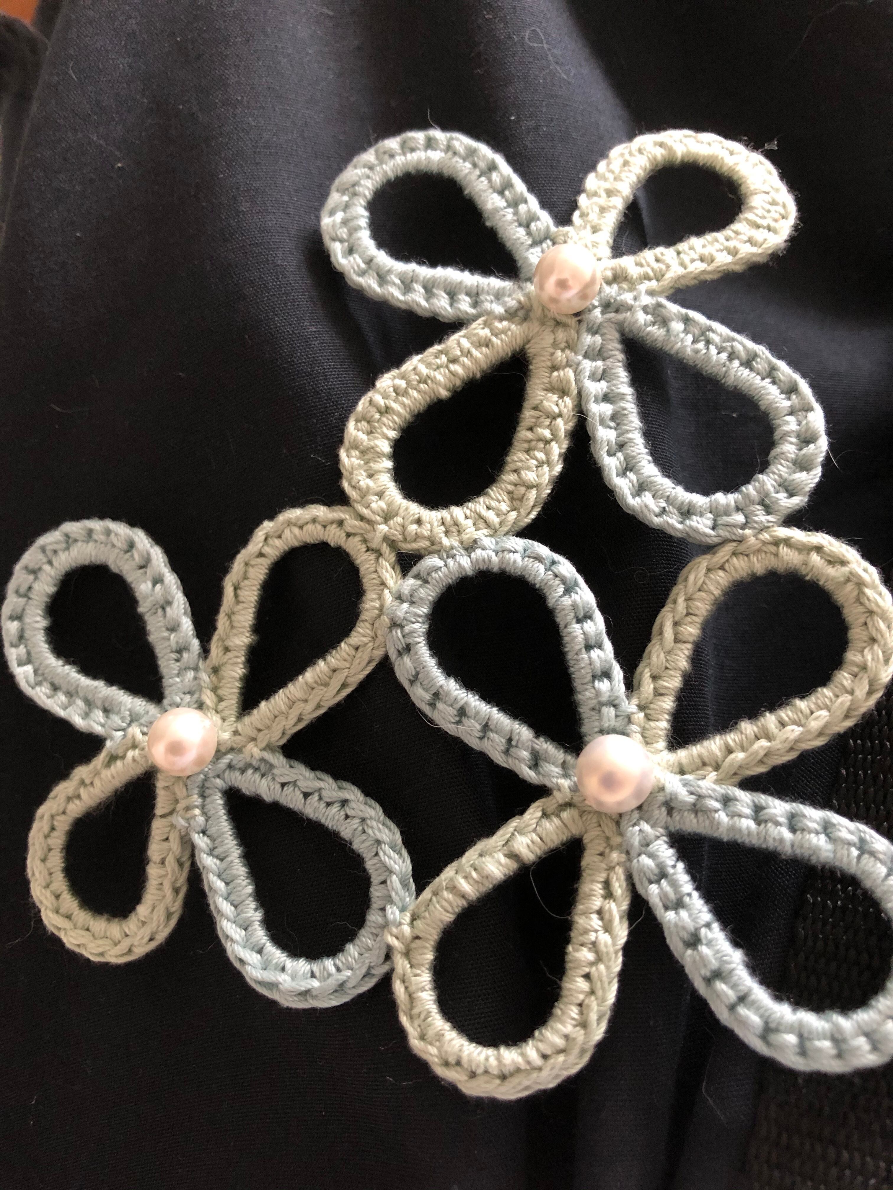 水色とライトグリーンの糸を編みこみ、夏らしい爽やかさを演出します。