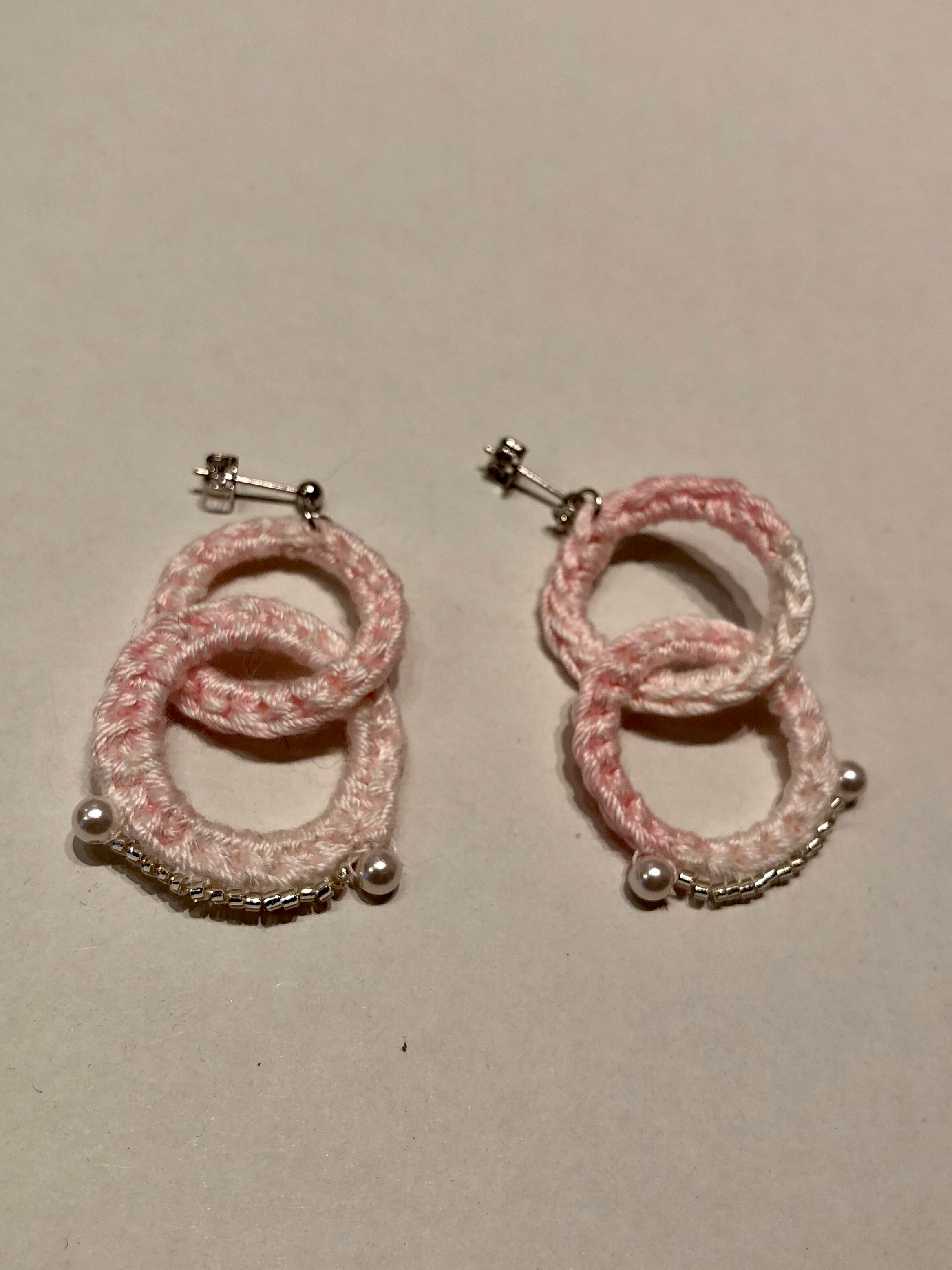 白からピンクのグラデーションの糸を使うことで、円の交差に変化がつきました。