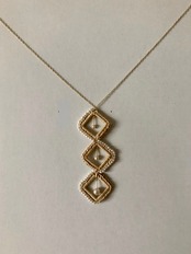 小さなパールで片側のみ縁取り、スクエアの中には長めにつけて揺れるパールが印象的。
