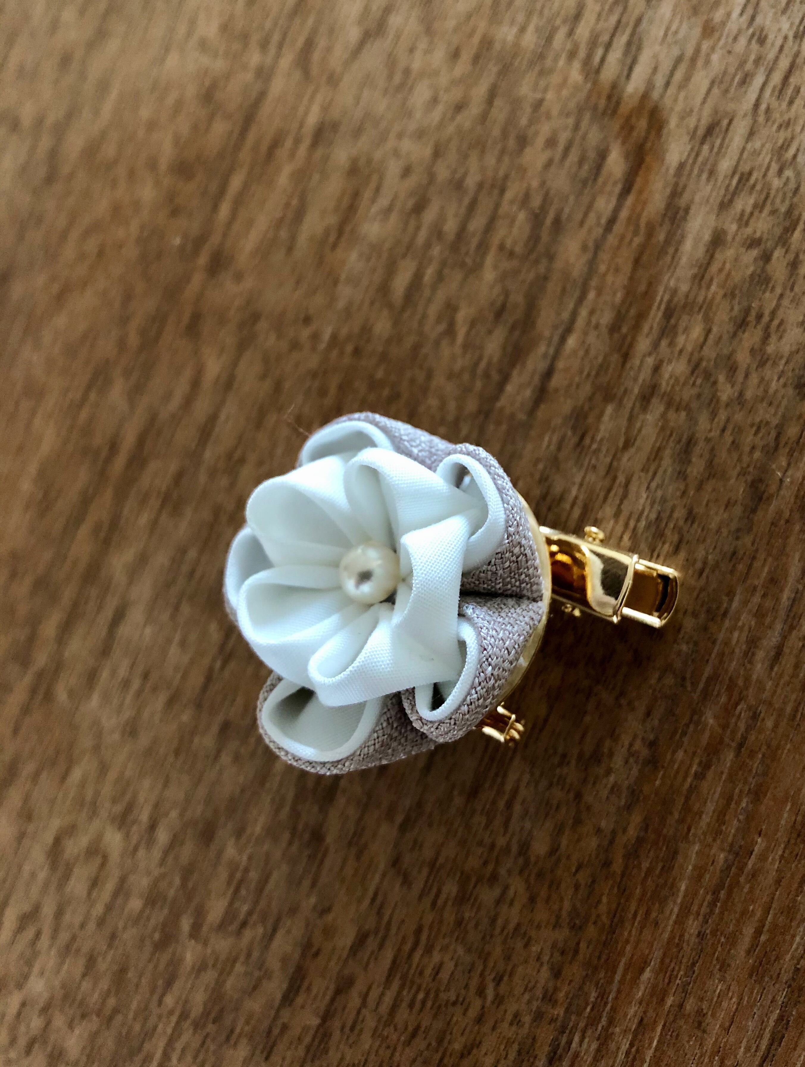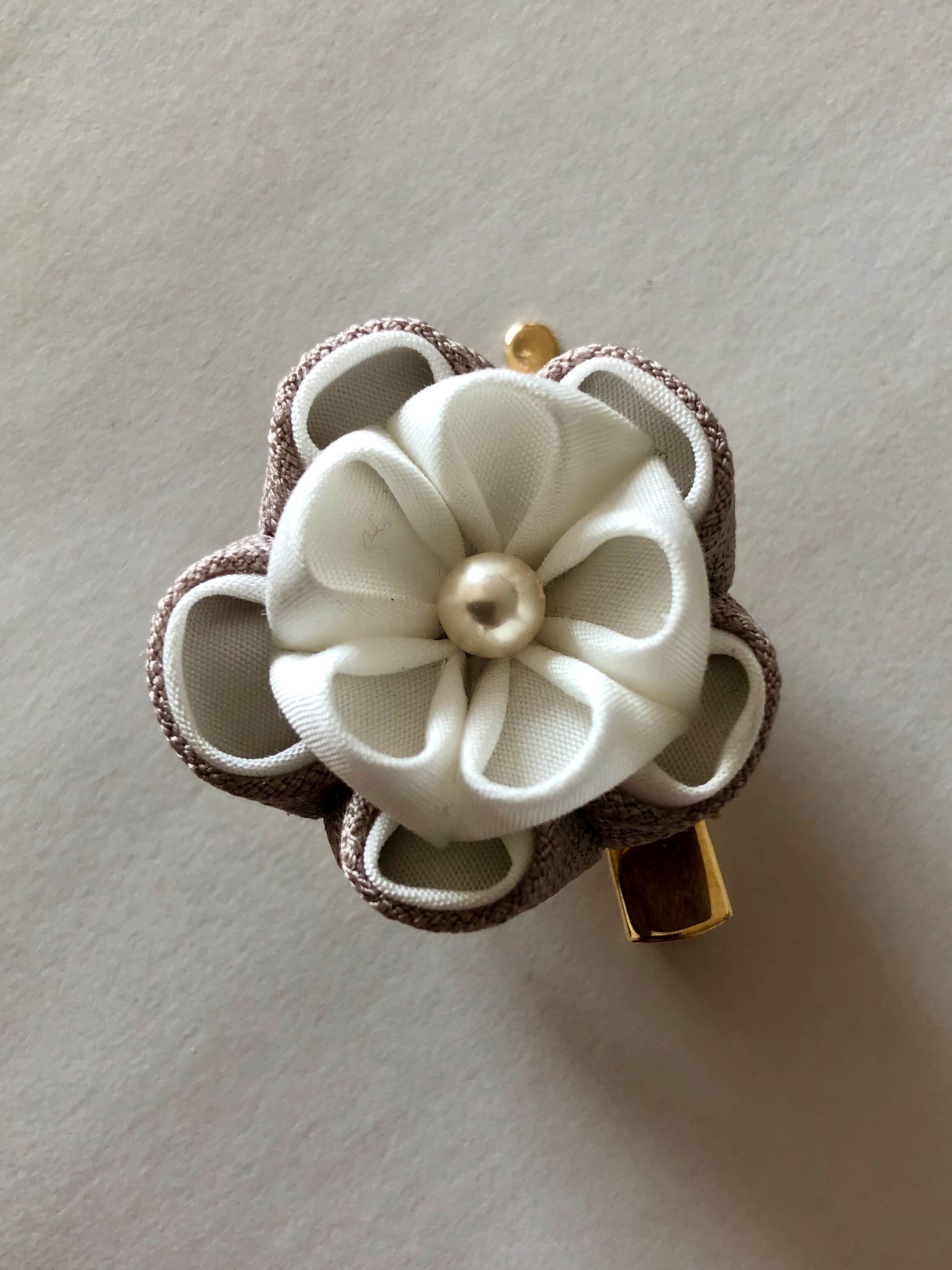 金具の土台が2wayクリップになっているので、ブローチとしてもショールの留めとしても髪飾りとしても使えるお花飾り。