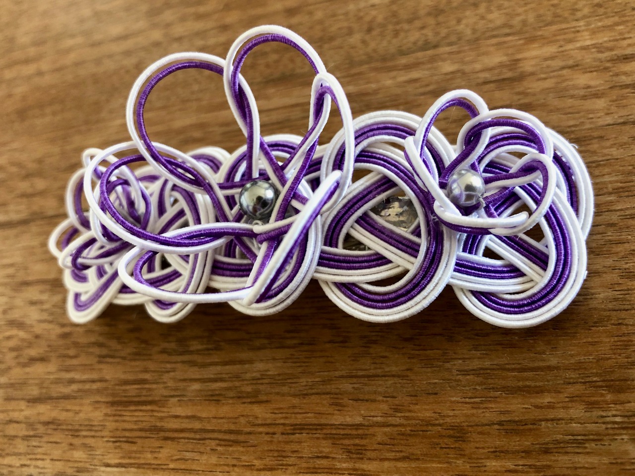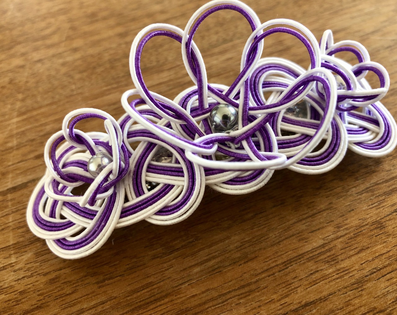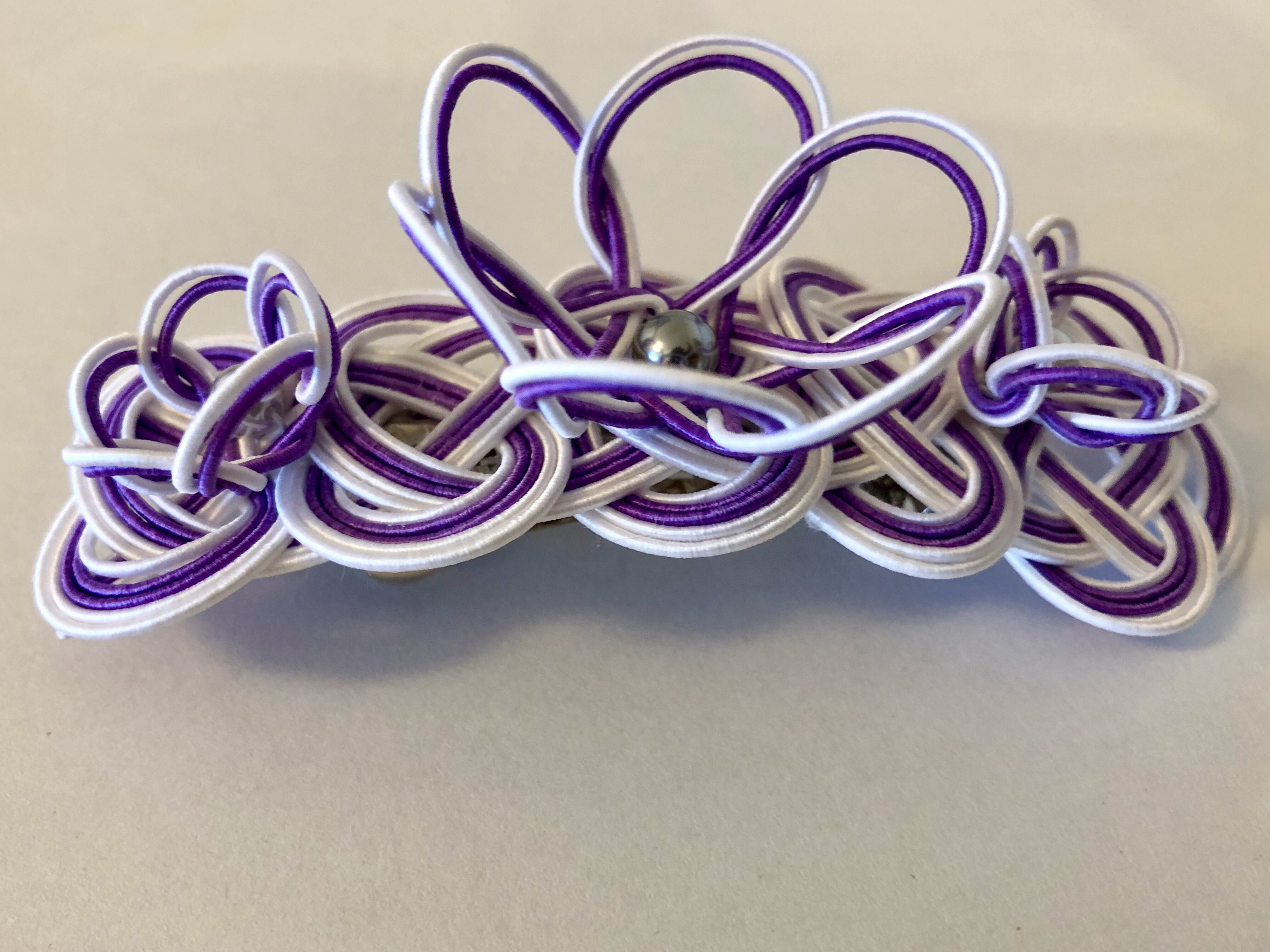 ◉白と紫の水引を使った立体感のあるバレッタ