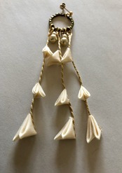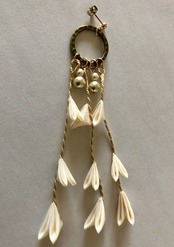 ゴールドベースに生成色のつまみ細工を組み合わせました。