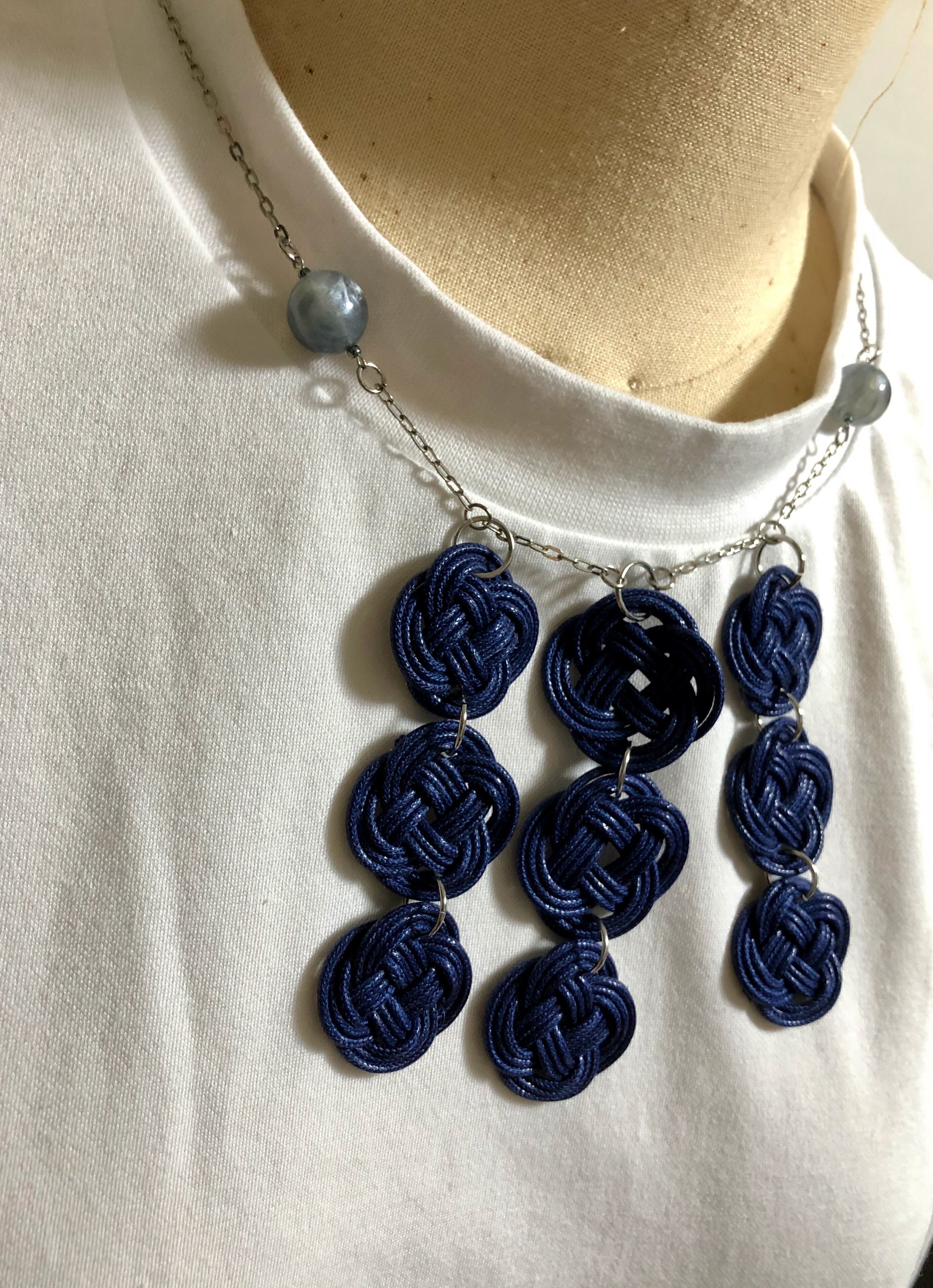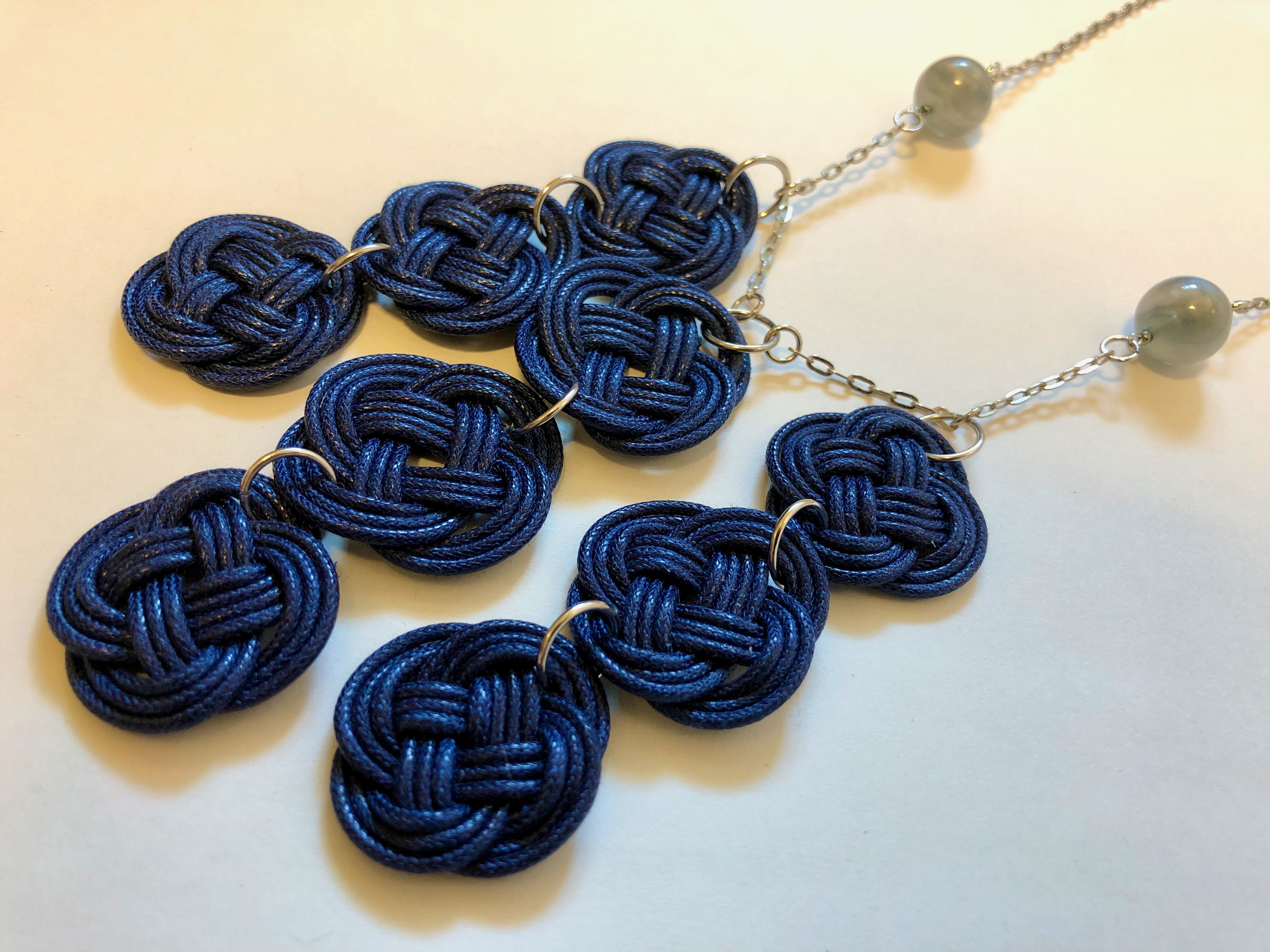 ◉水引の菜の花結びをモチーフにした大ぶりレザーネックレス。