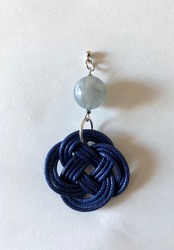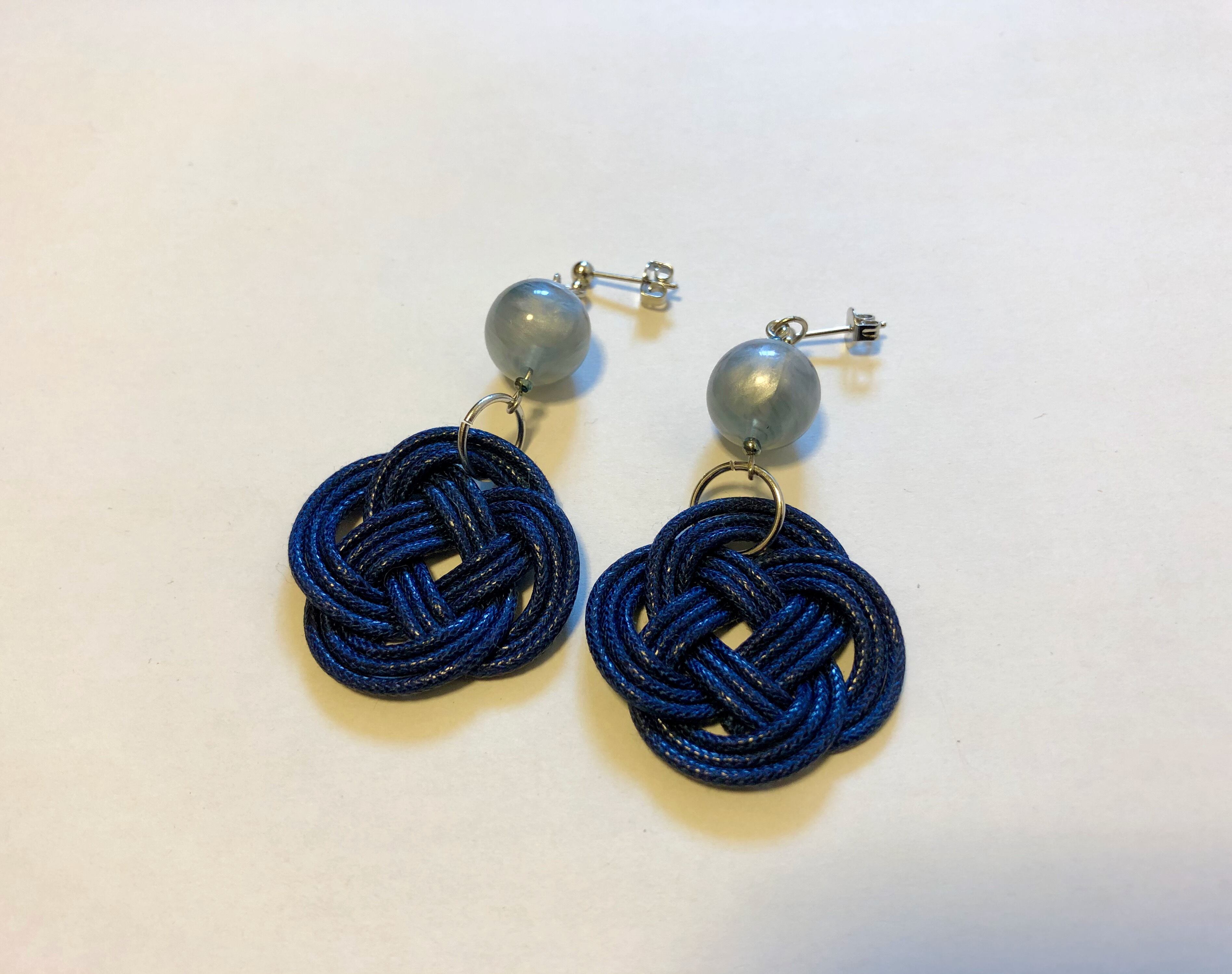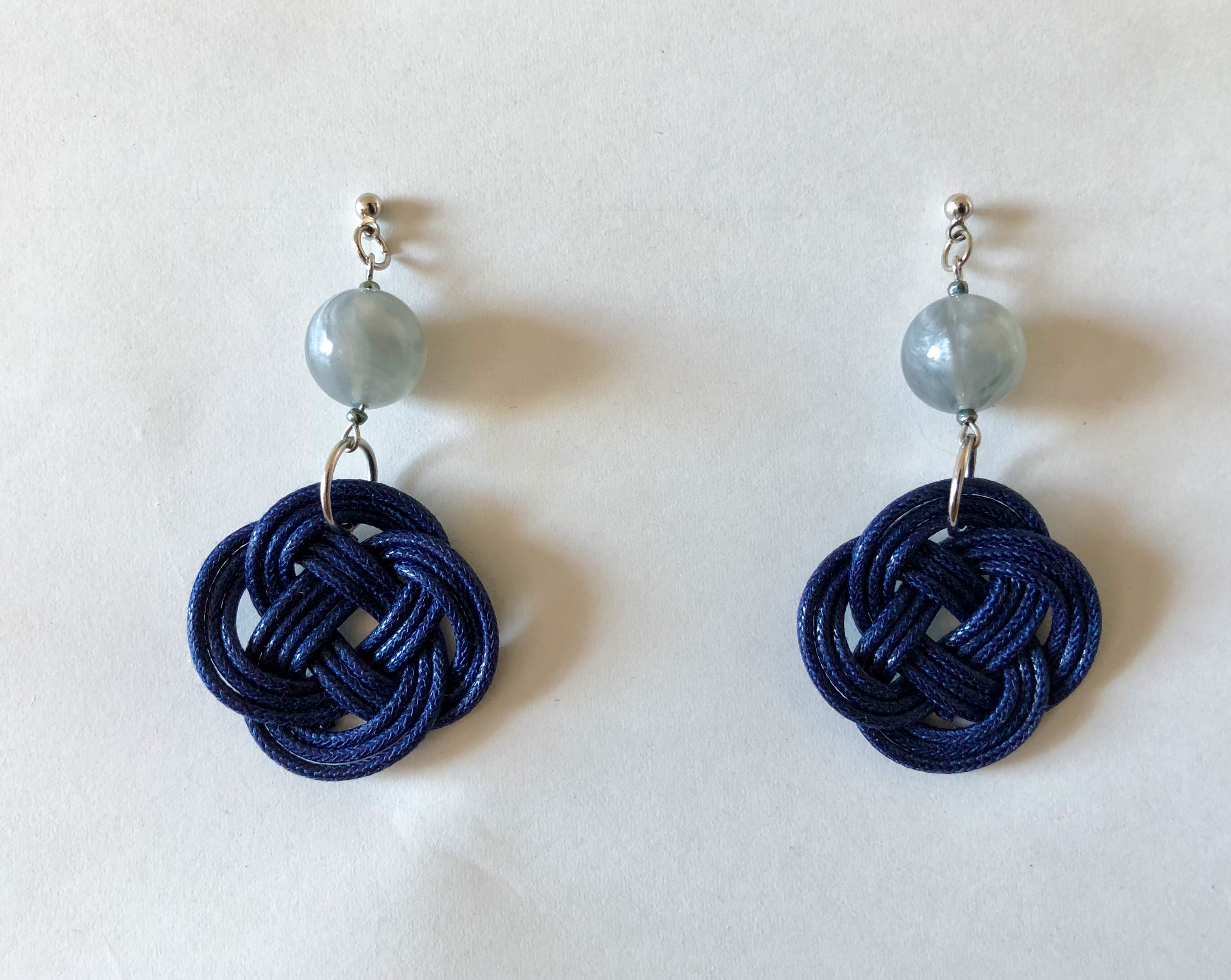 ◉ネイビーのレザーコードで菜の花結びをあしらったピアス